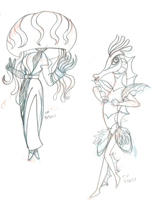 Second set of #mermay2021 sketches, This time it's Jellyfish and Seahorse from #TheMaskedSinger Season 4. The Masked Singer © 2019, Fox Studios #mermay #fanart #sketches