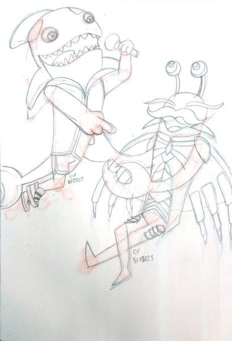 Third set of #mermay2021 sketches, consisting of Seashell from #TheMaskedSinger Season 5, and Hammerhead from the #TheMaskedDancer. The Masked Singer © 2019, Fox Studios #mermay #fanart #sketches
