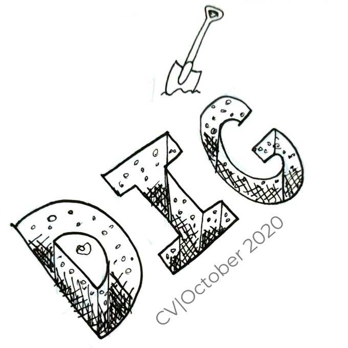 Inktober: Dig Art © 2020, Carla Vidal #carlavstudios #carlavstudiosart #originalart #inktober #inktober2020 #dig