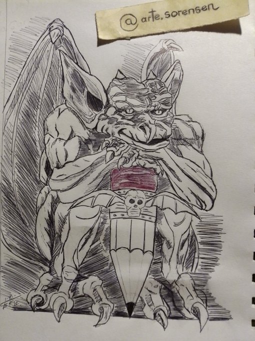 Inktober 2022 Dia/Day 01 Gargola/Gargoyle Tamaño 18x14cm Boligrafo/ pen Rojo y negro/ Red & Black #inktober2022 #draw #draw_pen