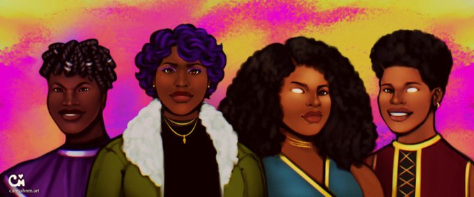 Week 2 #Blacktober2022 : Original! Here are some characters from my comic wip "Nyxia", a story about 4 young magicians trying to save the world! 💖