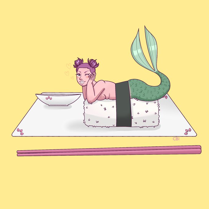 !! Warning for gore (segmentation) and a nip !! I hope you weren't eating sushi before seeing this... 😅 I've had an idea for a sushi mermaid for a long time, and now that it's #Mermay I decided to fully realise it! #digital #mermaid #sushimermaid #gore #segmentation #segmented