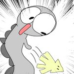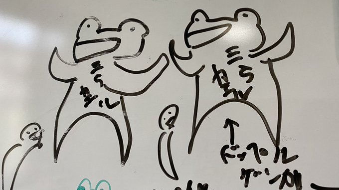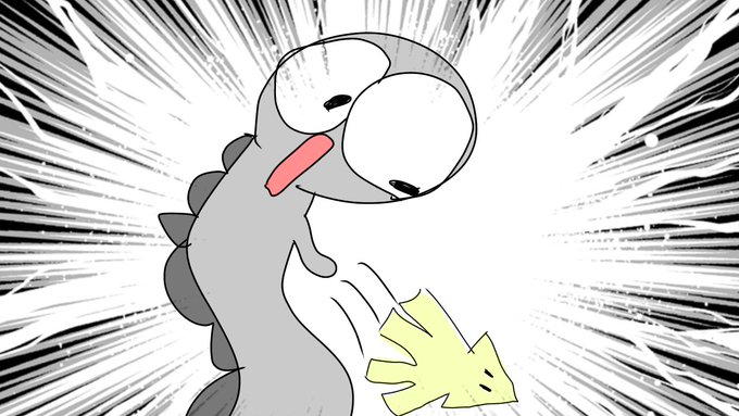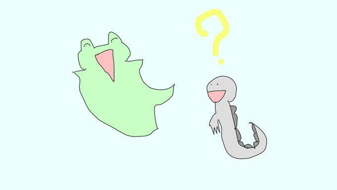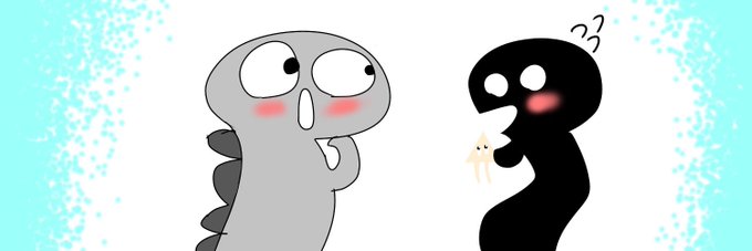〈14日目〉 おたまとにせおたまのヘッダーを作りました‼︎ この絵はにせおたまがおたまに おたま好物のイカをプレゼントしているところの絵です。😊 おたまびっくり‼️🦑 #100日チャレンジ #ヘッダー #イラスト #イラスト好きな人とつながりたい #絵師さんと繋がりたい