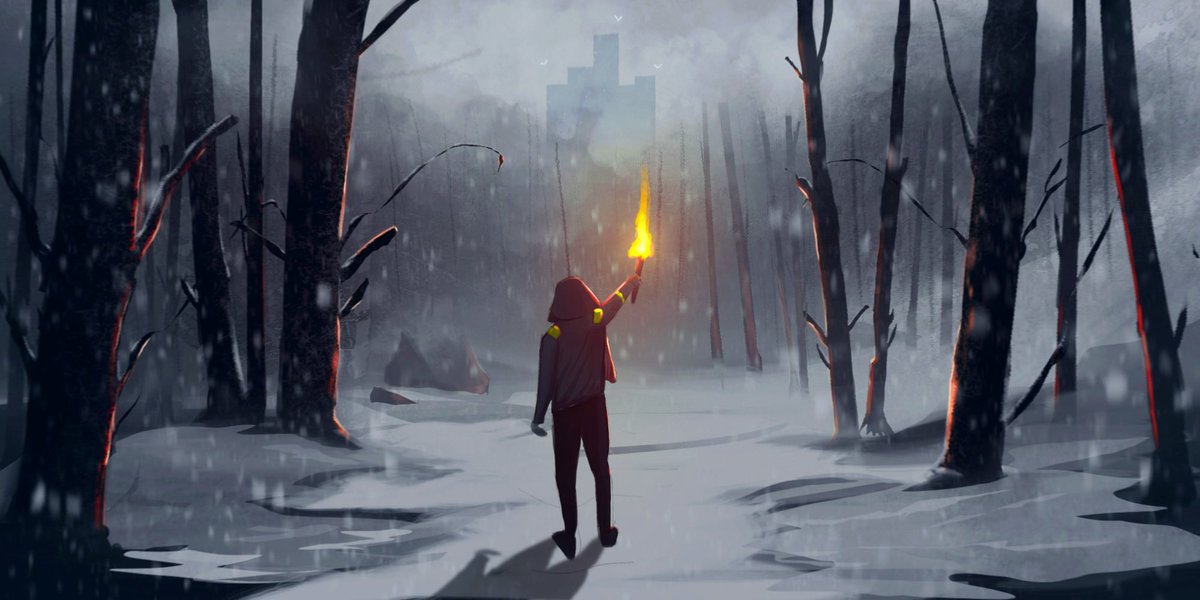 rainy foggy little paint study from a few weeks ago <3 as always i figured adding dema in the background would improve it hehe #cliqueart
