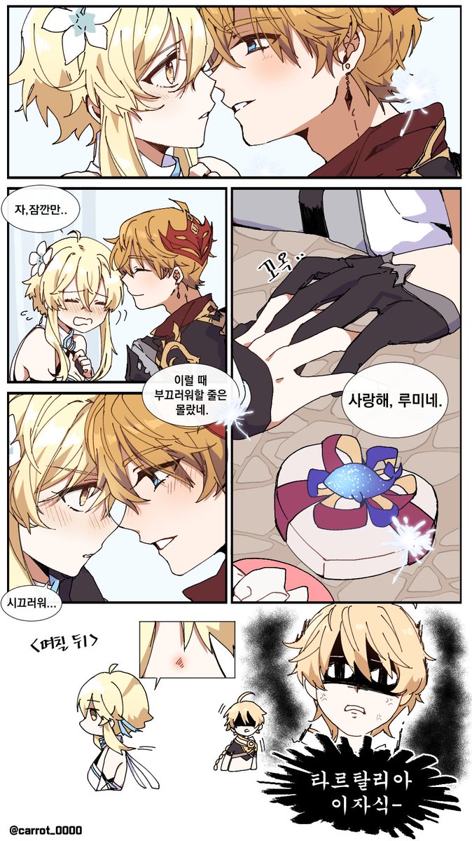 원신)화이트데이 타르행자 2 뒤늦게 또 이어본다... 타르탈리아가 준 사탕 장식 노린거겠지? 한동안 그거때문에 과몰입 와버려서 죽는 줄 알았네🤣🤣🤣🤣 #GenshinImpact #ChiLumi