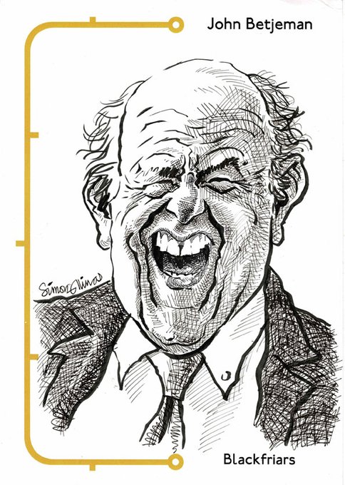 Another #caricature on the #LondonUnderground of #JohnBetjeman @BetjSoc of #Blackfriars for #inktober2020 @tfl @ltmuseum @BBCTheOneShow #commissions from photos accepted SEE THE REST at londoncaricature.uk #JohnBetjeman #Poet #presenter #writer londoncaricature.uk/caricature-of-…