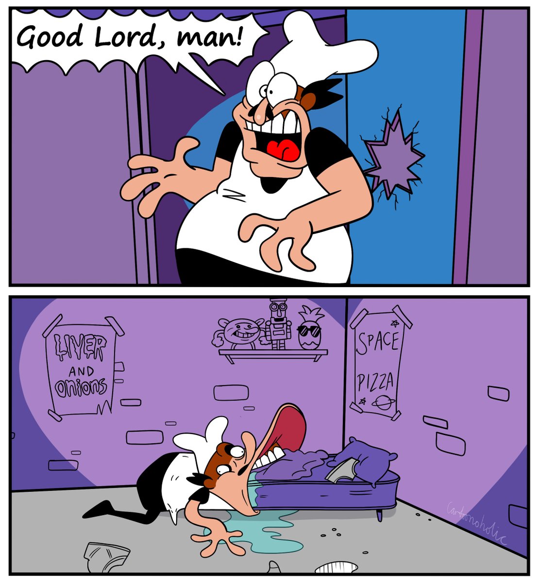This is inspired by that scene in Ed, Edd n' Eddy. I thought Fake Peppino worked perfectly in the place of Ed. This is probably something he would do. #pizzatower #Pizzatowerfanart