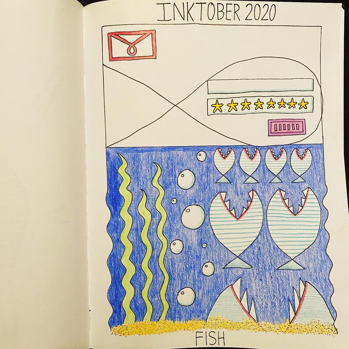 It’s time for Inktober! Last year was my first year participating, and I drew the current and previous 3 years of prompts. This year, I’m sticking to one drawing per day, but decided to add some color. #inktober #inktober2020 #inktober52 #ink #coloredpencil #inktoberfish #fish