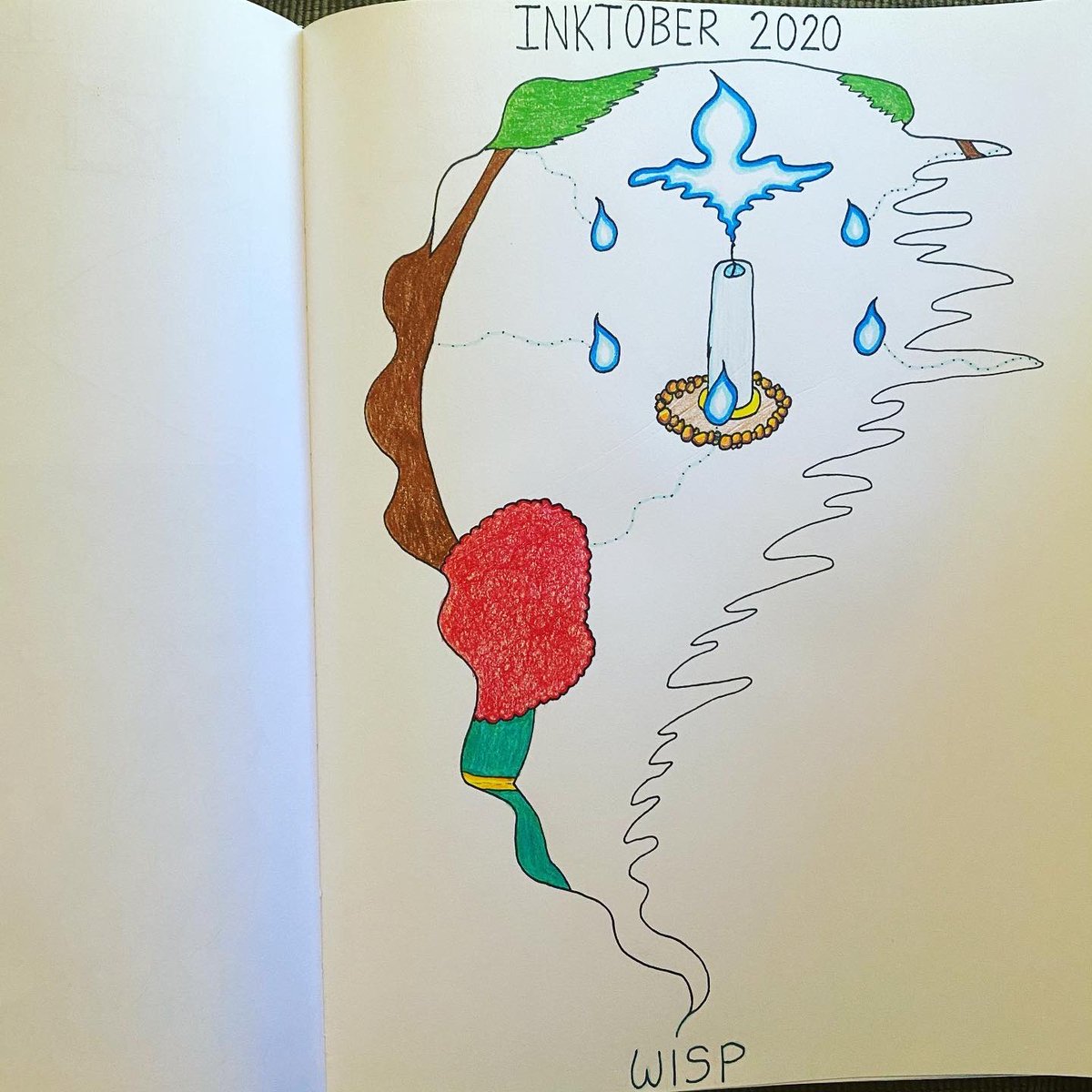 Inktober 2020 - Day 2 - Wisp #inktober #inktober2020 #inktober52 #ink #coloredpencil #inktoberwisp #wisp #candle #brave #merida