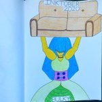 Inktober 2020 - Day 3 - Bulky #inktober #inktober2020 #ink #coloredpencil #inktoberbulky #bulky #couch #hair #dress #belt #strongwoman #marge #margesimpson #simpsons