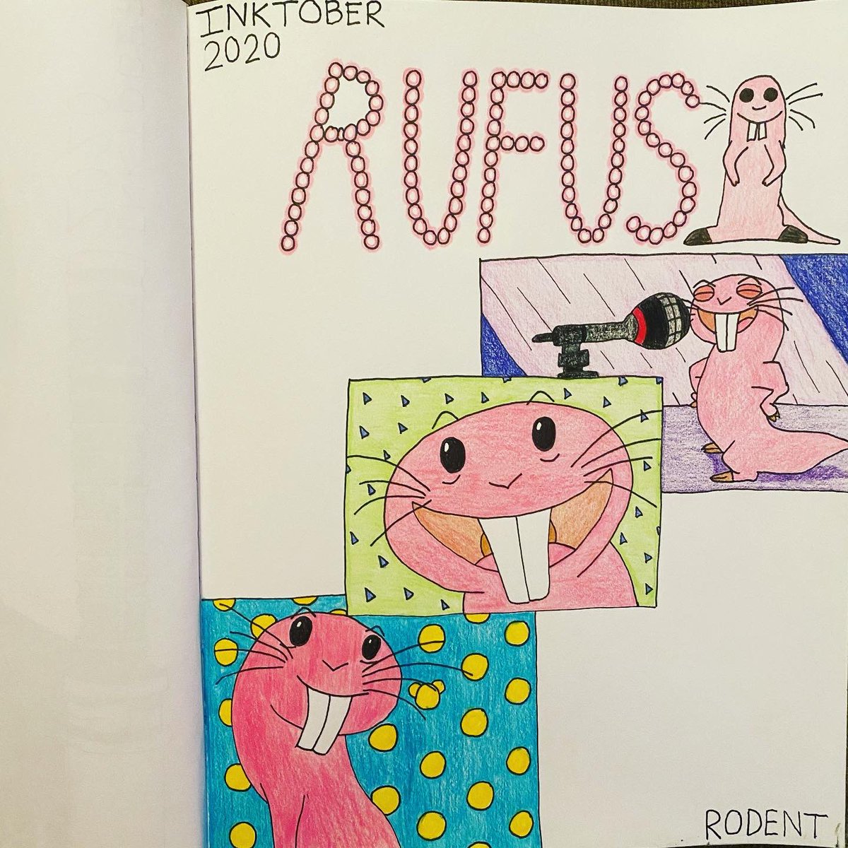 Inktober 2020 - Day 6 - Rodent #inktober #inktober2020 #ink #coloredpencil #inktoberrodent #rodent #rufus #nakedmolerat #nakedmolerap #ronstoppable #kimpossible