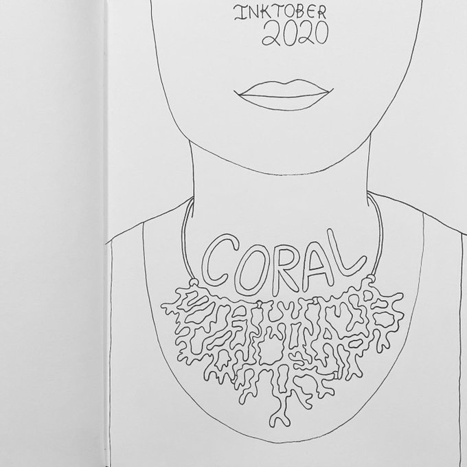 Inktober 2020 - Day 20 - Coral I bought this necklace from the Aquarium of the Pacific gift shop a few years ago. #inktober #inktober2020 #ink #coloredpencil #inktobercoral #coral #necklace #aquariumofthepacific