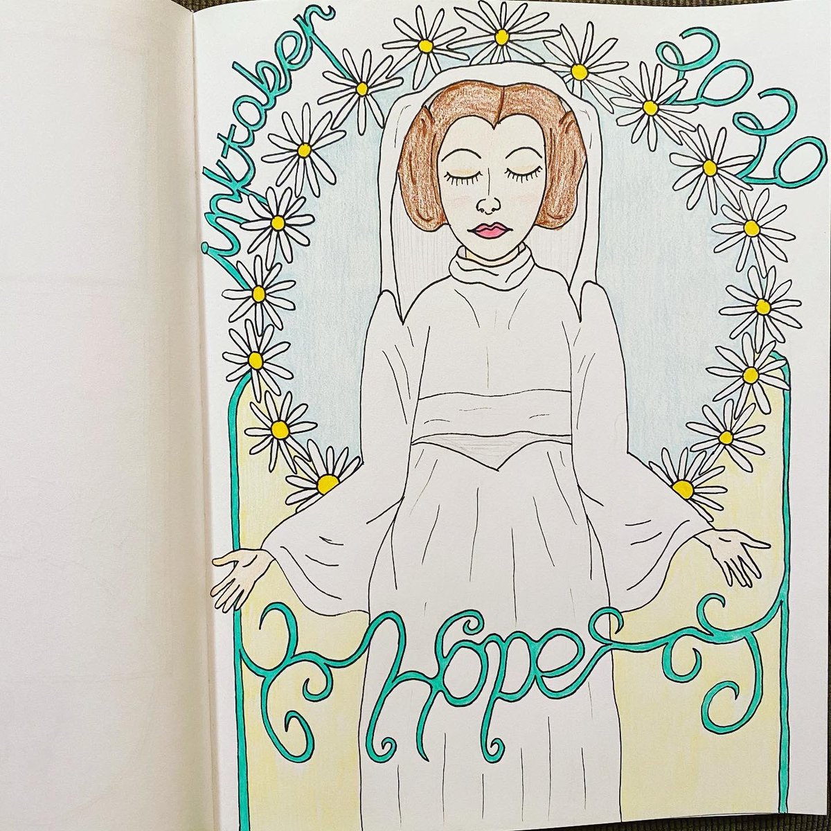 Inktober 2020 - Day 10 - Hope #inktober #inktober2020 #ink #coloredpencil #inktoberhope #hope #leia #princessleia #anewhope #rogueone #starwars #artnouveau