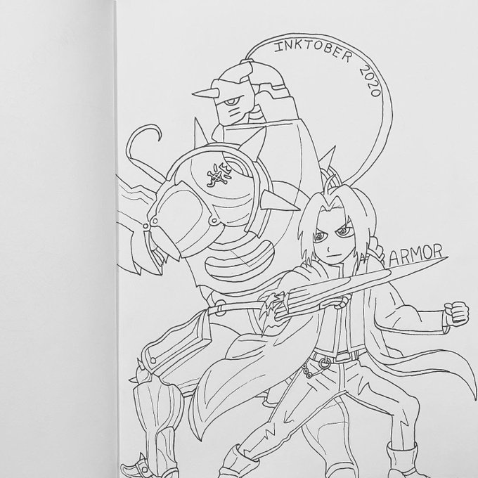 Inktober 2020 - Day 14 - Armor #inktober #inktober2020 #ink #coloredpencil #inktoberarmor #armor #alphonse #edward #elricbrothers #fullmetalalchemist