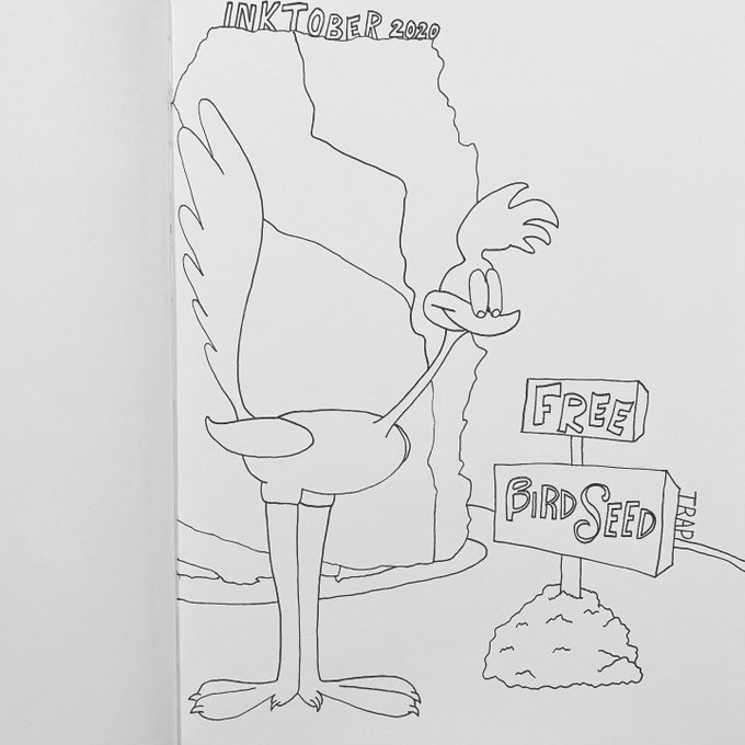 Inktober 2020 - Day 18 - Trap #inktober #inktober2020 #ink #coloredpencil #inktobertrap #trap #roadrunner #looneytunes #merriemelodies #freebirdseed