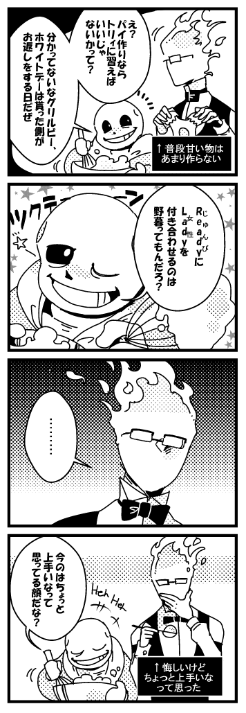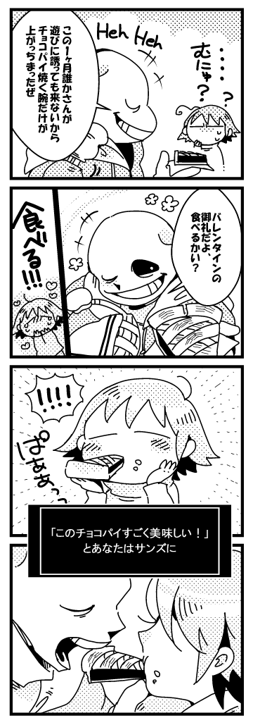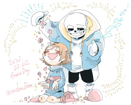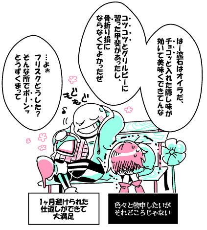 【※UNDERTALEネタバレ注意】 3/14の24時なのでホワイトデーと言い張ります。 ↓のバレンタインの続きのサンフリ漫画! twitter.com/casket_Date/st…