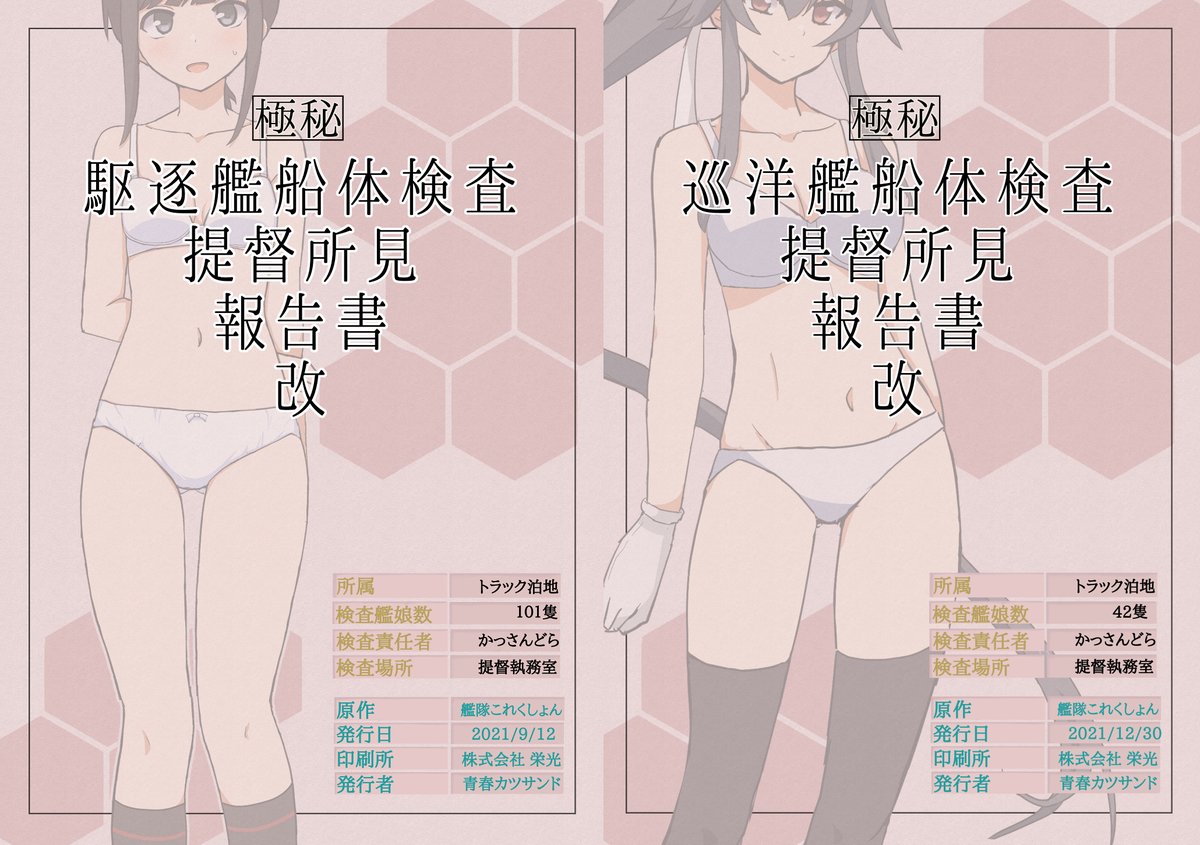 書店委託の在庫が尽きていた新刊「駆逐艦船体検査提督所見報告書・改」の在庫が復活しました! よろしければドゾー melonbooks.co.jp/detail/detail.… 同じく新刊「巡洋艦船体検査提督所見報告書・改」も委託中です。そちらもよろしければ~ melonbooks.co.jp/detail/detail.…
