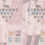 C100で頒布予定の新刊「戦艦空母船体検査提督所見報告書・改」です。日曜日の東地区ソ-44aにて待つ! 委託通販も始まってますので、よろしければぜひ!melonbooks.co.jp/detail/detail.…