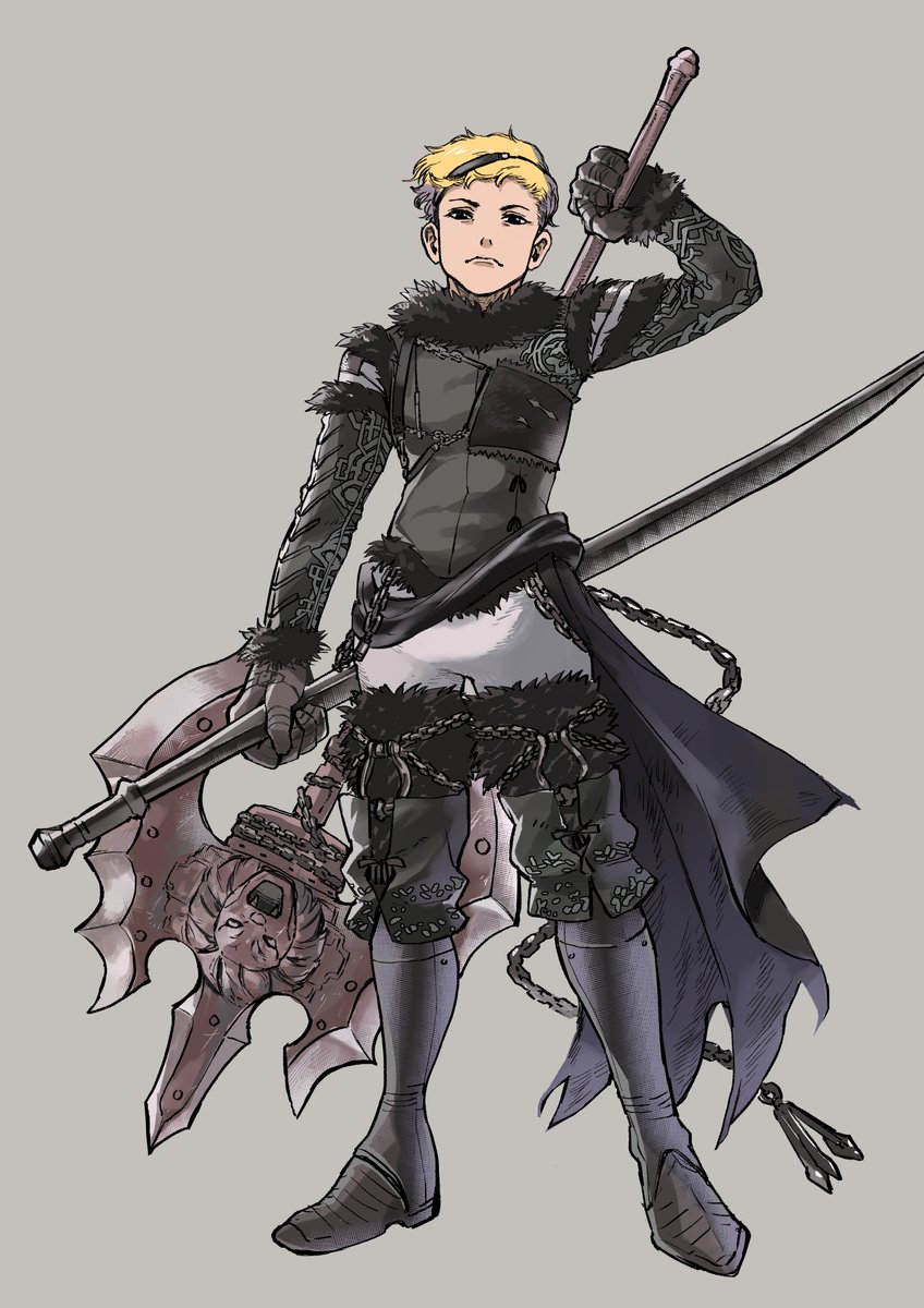 NieRシリーズのモーションアクターをやっている杉口秀樹さん(@jagar001)と呑んでるときに『NieRの世界に杉口ニキが転生したら…』という話題で盛り上がったので描かせてもらいました。 レプリカントは一番好きなゲームなのでノリノリでした。 杉口ニーアニキ。 俗称:杉口ニ―兄貴。(金髪ver)