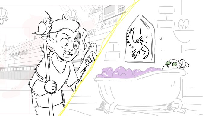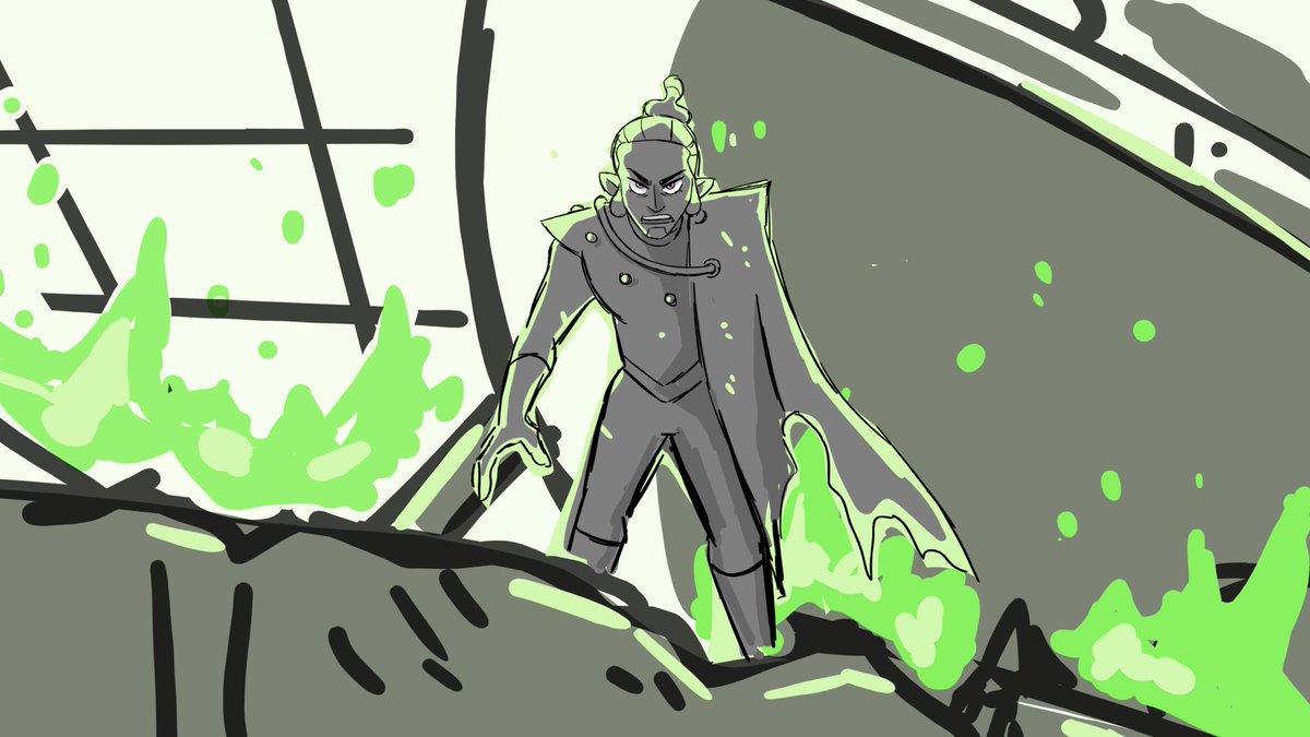 So I IMMEDIATELY fell in love with our emo son. I think "feral" was the exact direction I was given when asked about how he should act. (2/8) #tohspoilers (ALSO I was really proud that I boarded this scene with almost entirely reuse BGs xD)