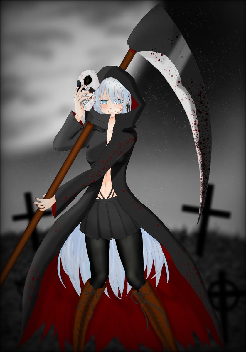 お菓子くれないと命刈り取っちゃうタイプのくもりちゃん #瑞白くもり #くもりのち貼れ絵 #halloween2021