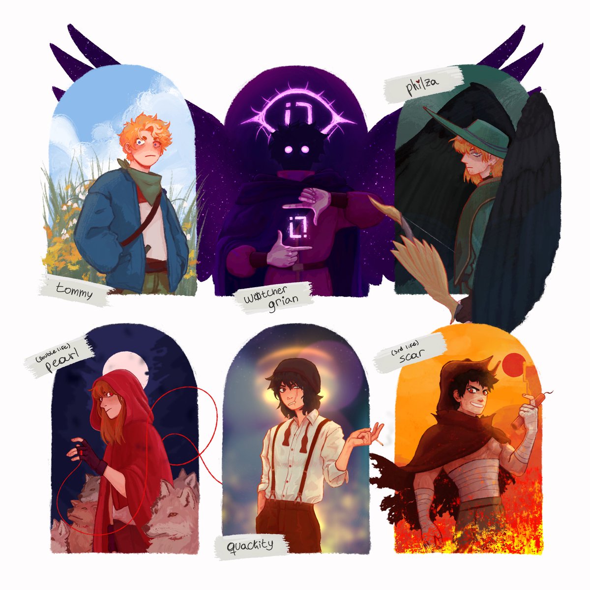 six characters challenge!! this took forever o(-( #tommyinnitfanart #grianfanart #philzafanart #pearlescentmoonfanart #quackityfanart #goodtimeswithscarfanart