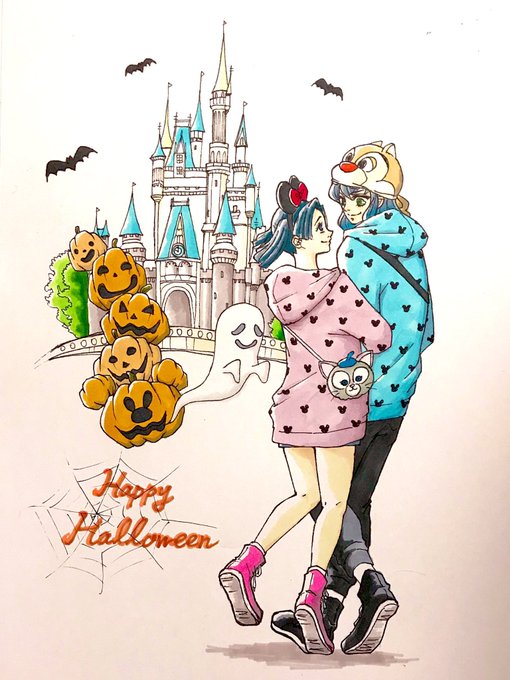 24 165 まだアナログな2年前に描いた🎃伊アオ🏰 インパしたい気持ちが昂って描いたのを覚えてる笑 またふたりでお出かけさせたいな〜 22/10/31 18:03