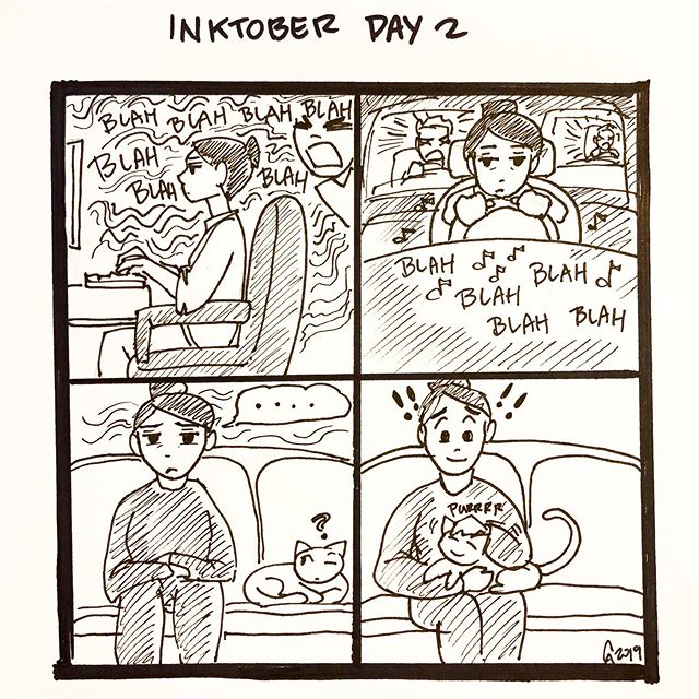 #inktoberday2 “Mindless” I think I’ll be posting these #catcomics at midnight every night LOL 😂🤷🏻♀️ Oh well! Enjoy! #crystafett #cathleenabalos #inktober2019 #inktober