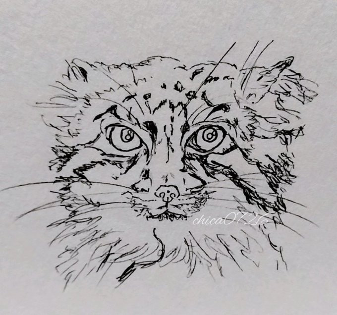 描いてる最中にもどんどん動いて、そして起きました😸 #猫の春ちゃん #絵の練習中 #猫絵 #つらら庵実物スケッチ