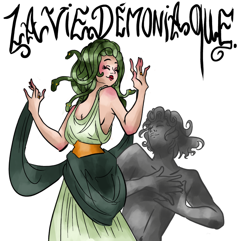 Do a little dance, make a little love, ... turn your partner into stone? She must've got the lyrics wrong 😲 #inktober #inktober2021 #gorgon #medusa #smallartist