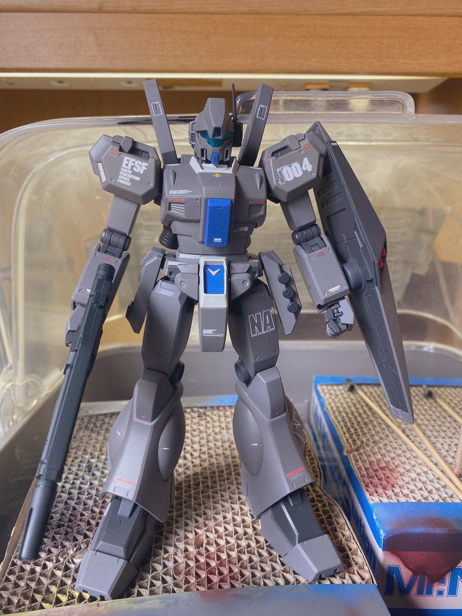 (´゚ω゚)MGジェガンできた!! デカール貼るの楽しかった!! プラモ向上委員会様様です。 #ガンプラの画像貼るとRTされると聞いて