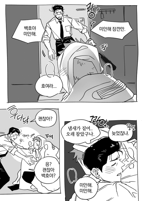 호열백호 오메가버스 (4/6) 대강 호열이랑 백호는 짝이고요 같이 산다는 설정입니다 히트를 기합으로 참는 백호라든가 둥지(?) 만드는 백호가 나옵니다 의미불명 만화니까 재미로만 봐주세요.. 나머지는 그리는대로 타래에 이을게요^^..