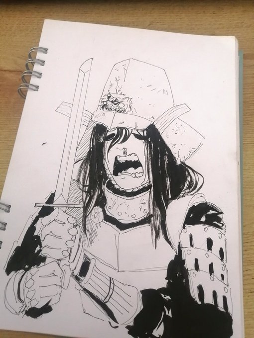 1 10 Dia 3 "el samurai cobarde" Perdió su honor, pero aun asi no quiere hacer el harakiri #inktober #inktober2022 22/10/04 05:49