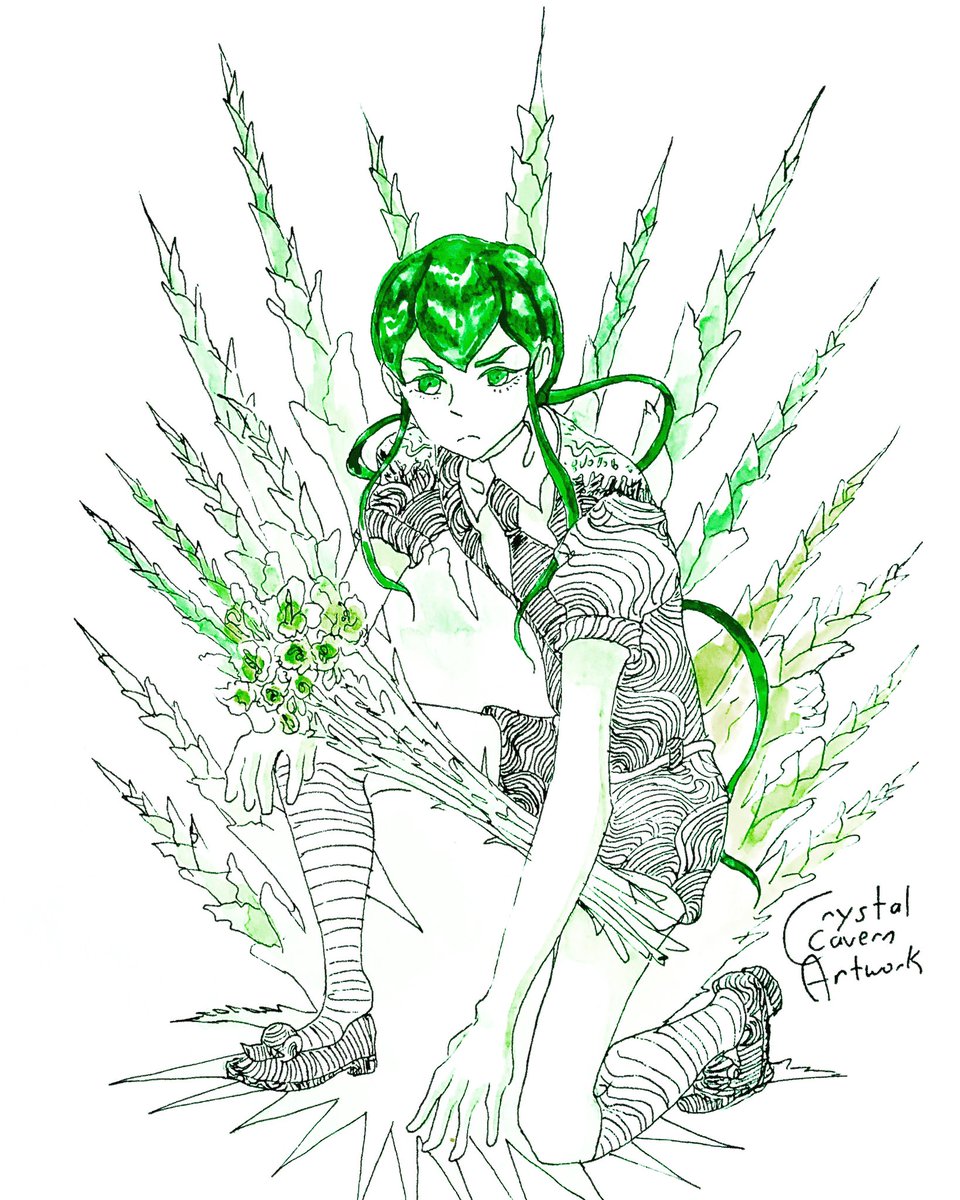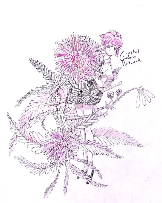 Inktober Day Three and Four: Mimosa Pudica and Green Star Gladiolus #hnk #housekinokuni #landofthelustrous #宝石の国 #inktober2022