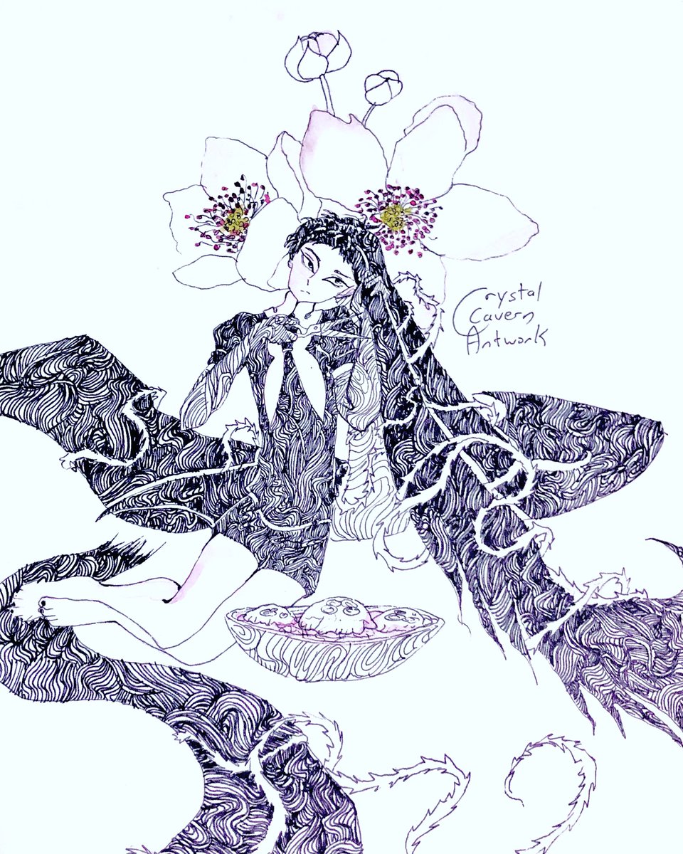 Inktober Day Five and Six: Black Calla Lily and Hibiscus #hnk #housekinokuni #inktober2022 #landofthelustrous #lotl #宝石の国