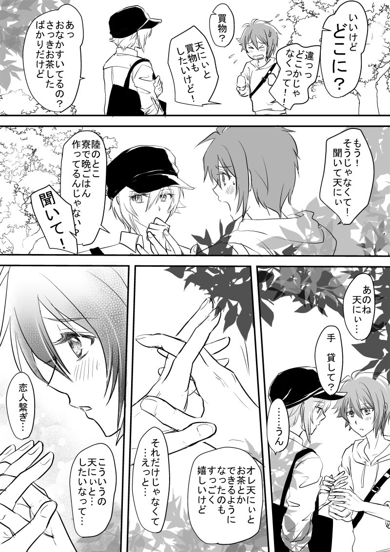67 294 #天陸が大好きだ 素敵な企画ありがとうございます🙏🏼💕 寮の陸くんの部屋で、あの陸くんの小さな机を挟んで天にぃと2人 頭をくっつけて笑顔でいっぱいお話してほしい願望🥰 20/10/04 22:42