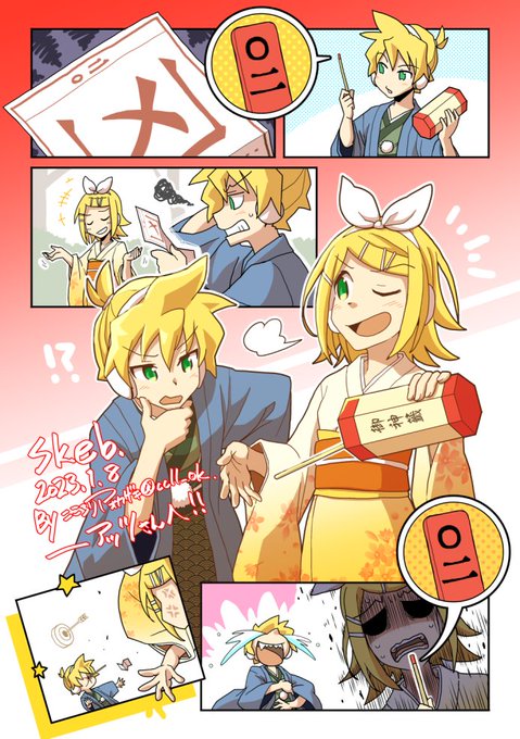 Skeb納品しましたー! 今年の描き初めはおみくじ鏡音です。 こころりP(オカザキ)さんのコミッション「新年ネタをお願いします。 新年のおみくじを引く事にした鏡音の2人。まず先に引いたレンくんが「02番(番号は好きにして頂いて構いません)」の棒を引き...」 skeb.jp/@ccll_ok/works… #Skeb