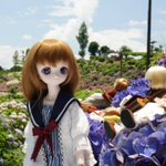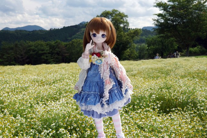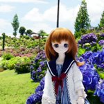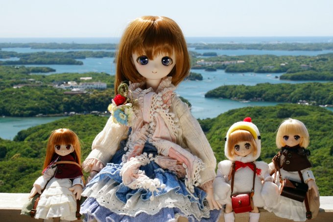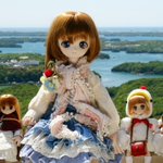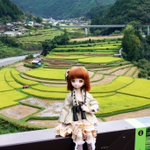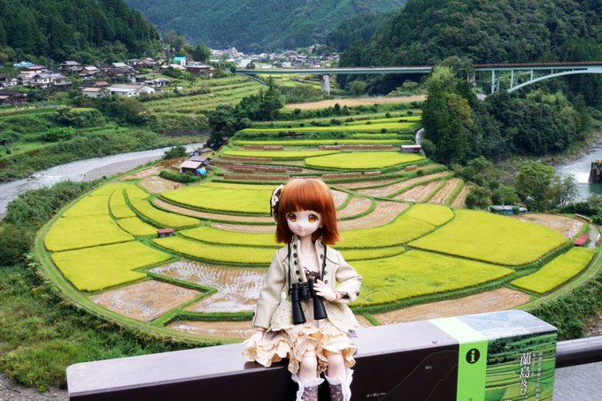 扇形の棚田で人気のあらぎ島です 稲刈り途中の面白い景色に出会えました 小雨で展望台が空いた隙きにパチリ📷 台風明けの曇天でも結構観光客がいました 今回がアルルさんの初お写真となります #MDDはいいぞ #アルル #CotinDoll