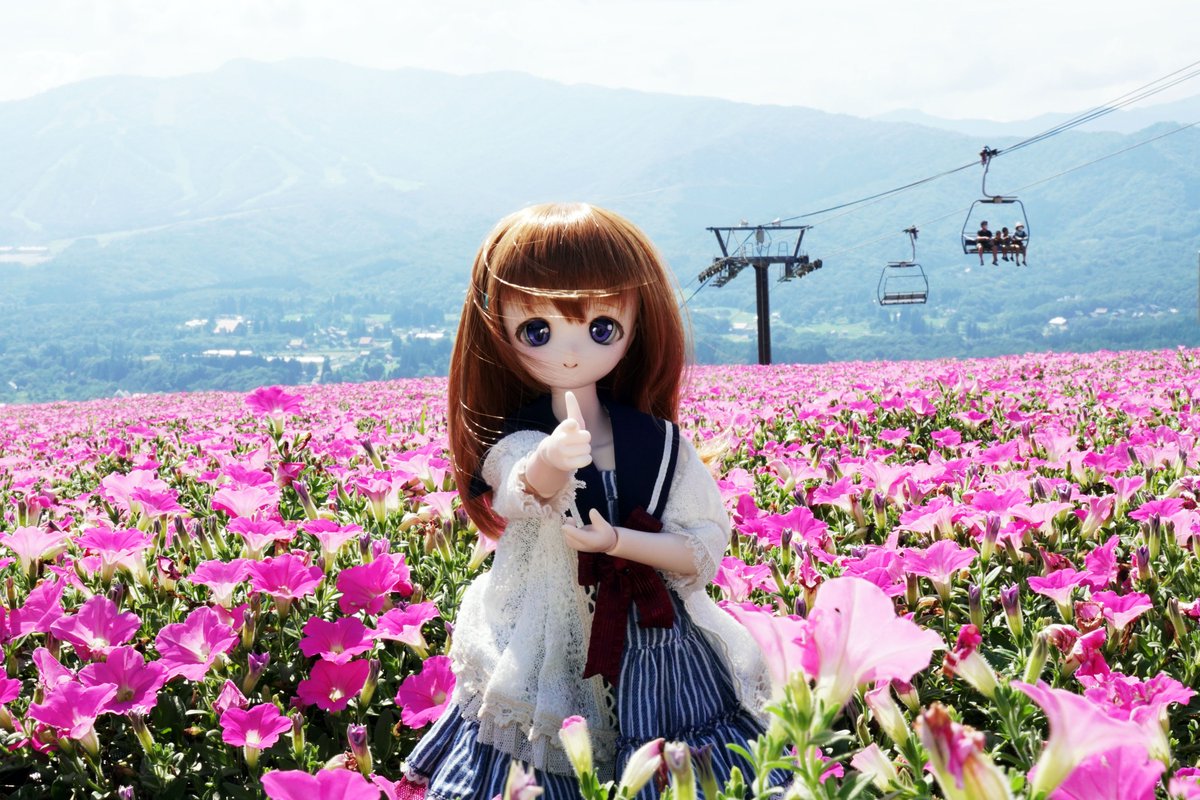 ゲレンデを彩る桃色吐息(ペチュニア)のお花畑です なんだか歌いたくなりますね 👄咲かせて 咲かせて 桃色吐息~🎵 ・・・音痴発見 バン! コロナ禍で平日ガラガラでした 天気が良いので今年の花は元気です 写真撮るならチャンスかも! #ねるっ子 #MDDはいいぞ #ひるがのピクニックガーデン