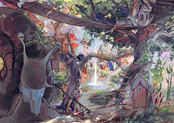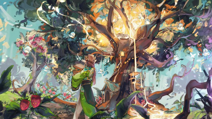 i painted @GTWScar’s elven starter base inspired by the pixie dust tree! rts super appreciated :)) #goodtimeswithscarfanart #hermitcraftfanart