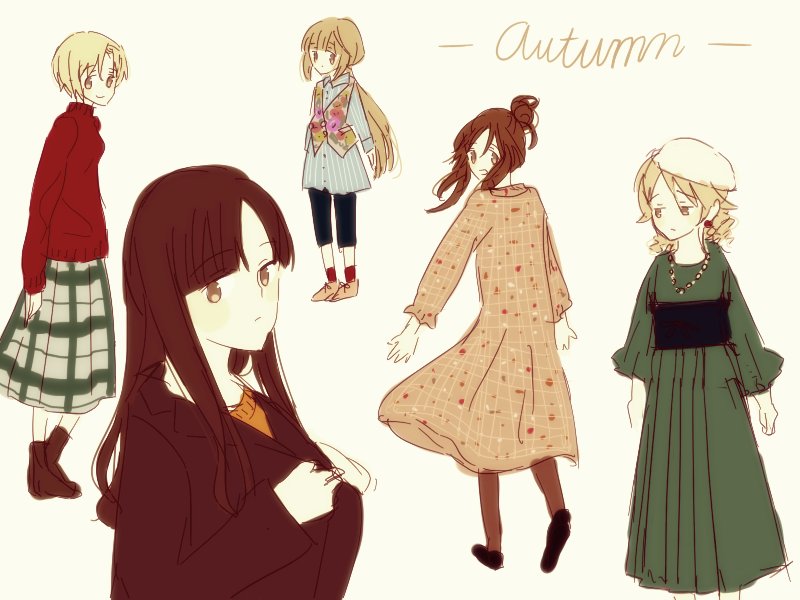 デレステらくがき。ゆかりちゃん、乃々ちゃん、藍子ちゃん、夕美ちゃん、芳乃ちゃん。