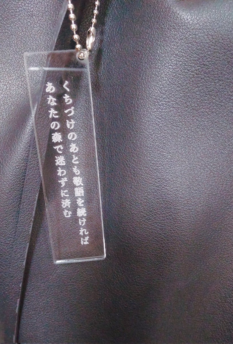 1121 2416 これを見た誰かがウッ…なにこれたまらん…とかウッ…推しカプ…って心の中で悶えたらいいのになと思いながらバッグにつけてる木下龍也さんの短歌キーホルダー 22/12/01 13:50