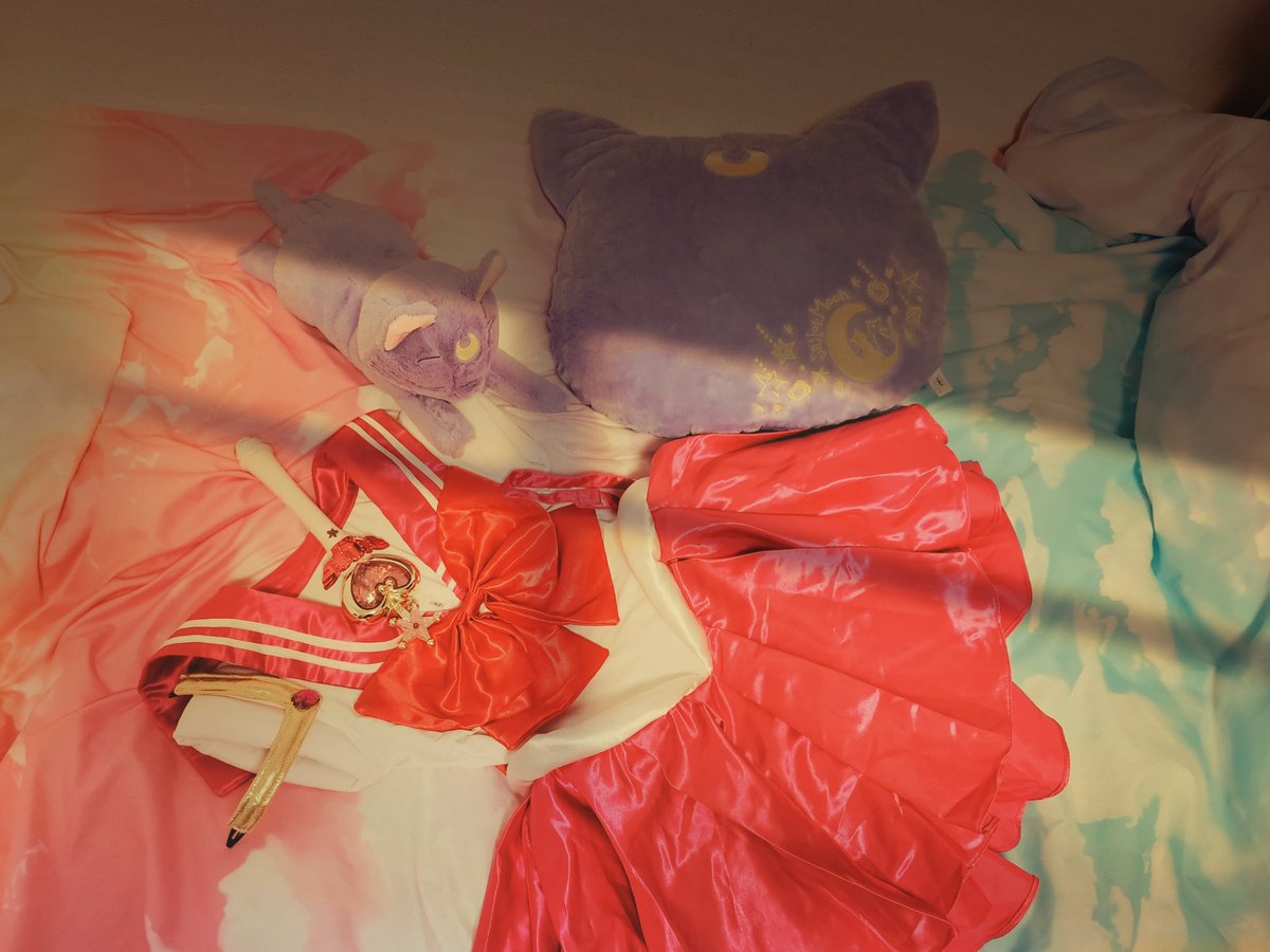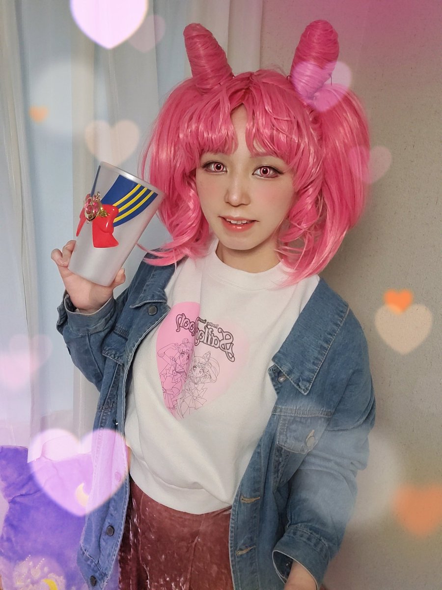 【宅コス】 セーラーちびムーン(セラムンS) ①エア併せ用の宅コス写真をみつひさん(@Mitsuhi__Cos)が背景めちゃくちゃ可愛くしてくれました!😂💕ありがとうございます! ②候補だったやつ ③④衣装ベッドに置いたらエモかったので加工したw #コス活記録しそ #セラムンコスプレ部