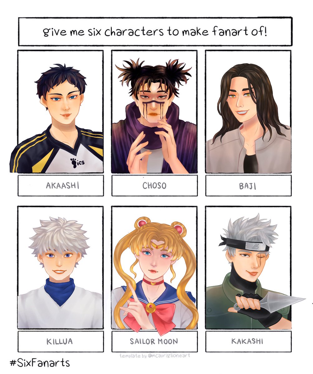 Batch 1 ✨ was supposed to post last night but i fell asleep hHh 🥲 thanks to everyone who suggested!! I had fun drawing them in between my lectures 😌 #SixFanarts #ArtistOnTwitter #artidn