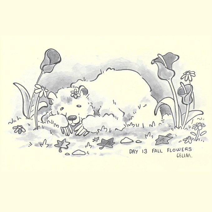 day 13 - fall flowers 💐 #inktober2022day13 #inktober #beartober22 #drawtober