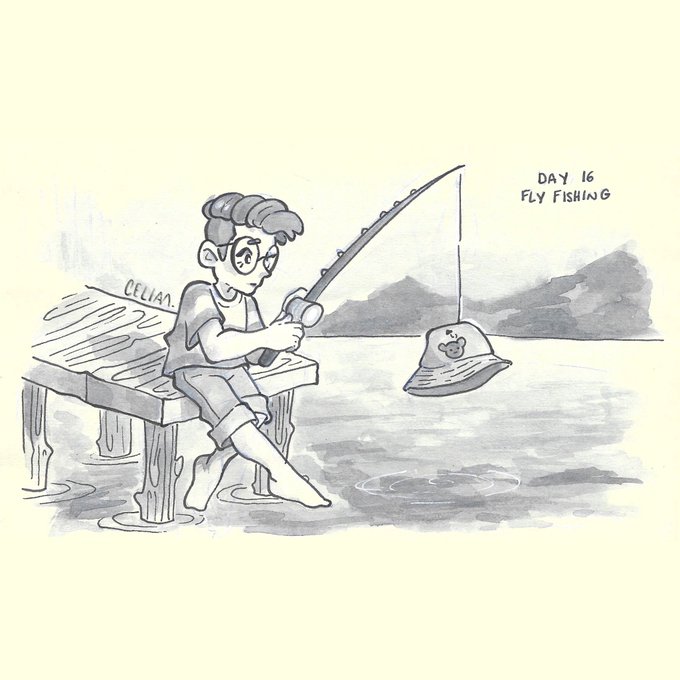 Day 16 - Fly fishing 🎣 #inktober #inktober2022day16 #inktober2022 #beartober22