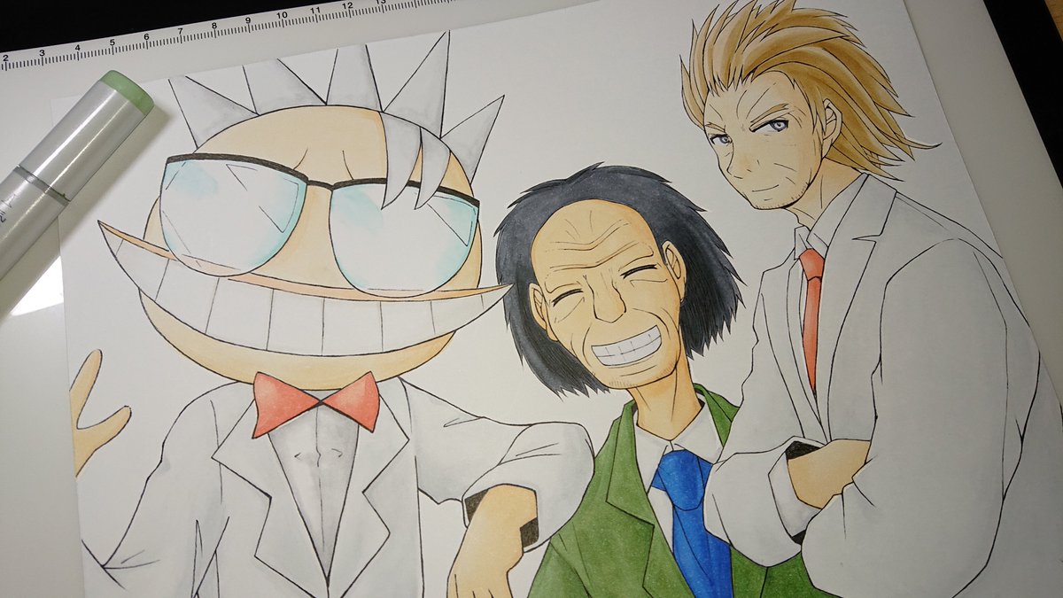 ワールドヒーローズより。大胆素敵な博士達を描きました。 「さあ、ワーヒータイムだ!」 #格ゲーキャラ描こうぜ #SNK #ワールドヒーローズ