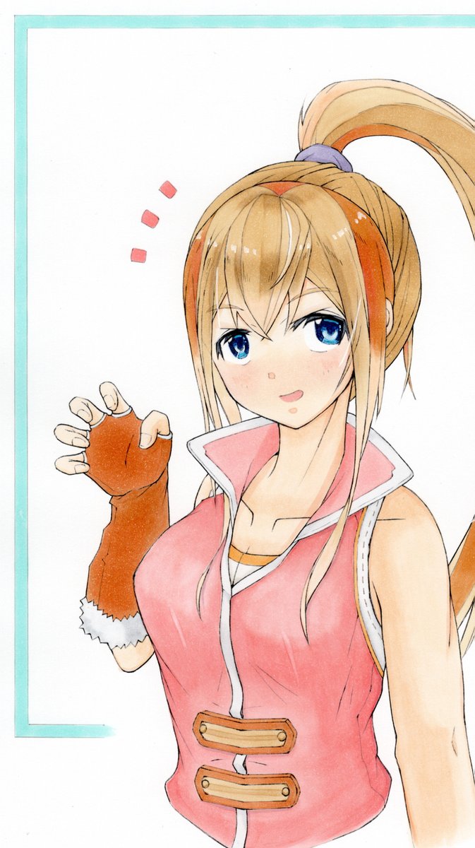 昔やってたゲームの推しキャラを描きました。青髪ポニテ娘(・ω・) #ソルゼロ