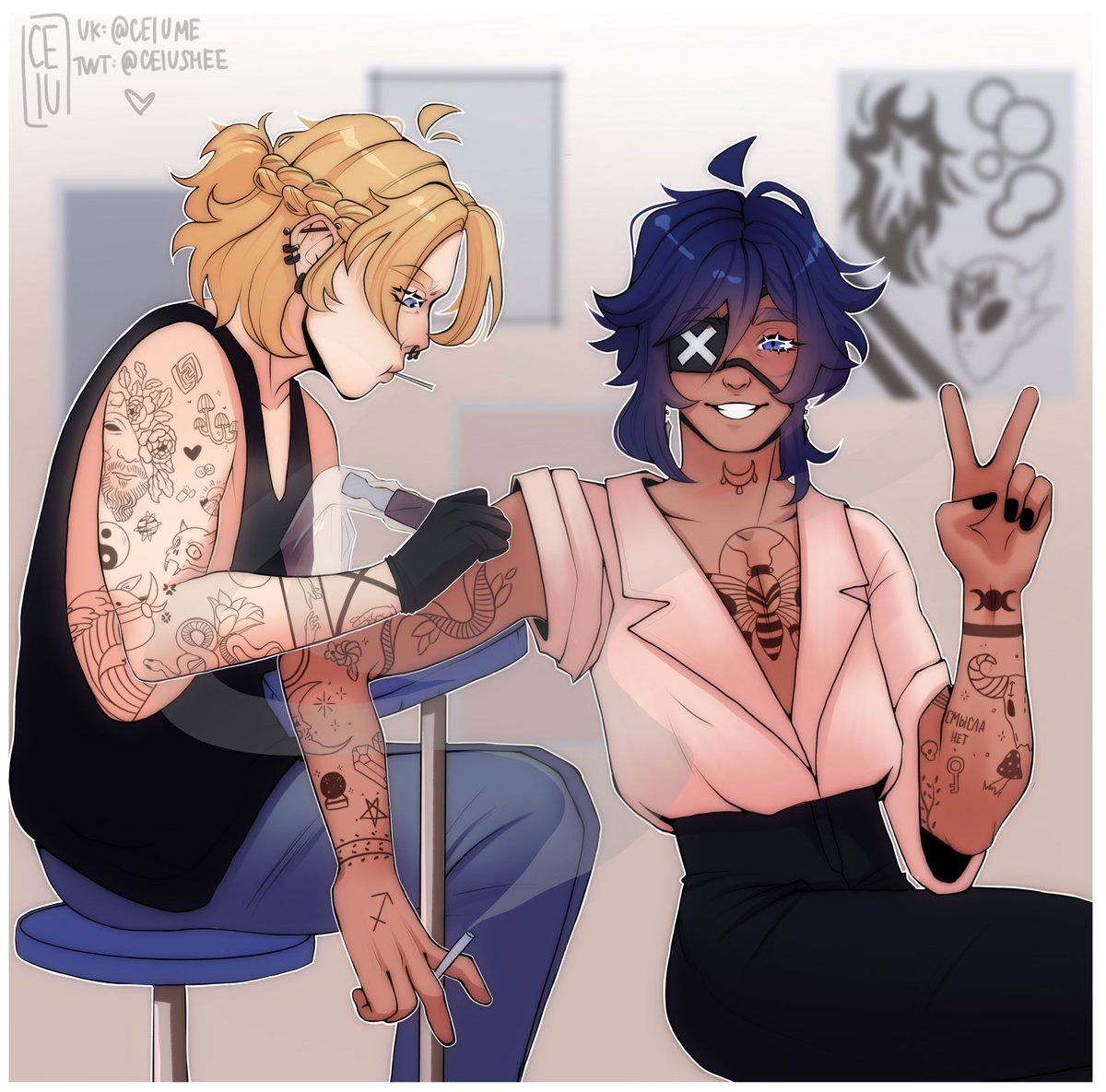 современная аушка, где альбедо работает тату-мастером и бьет своим друзьям додикам татушки очень хочу развить эту идею #原神 #Kaeya #GenshinImapct #genshinimpactfanart #Albedo