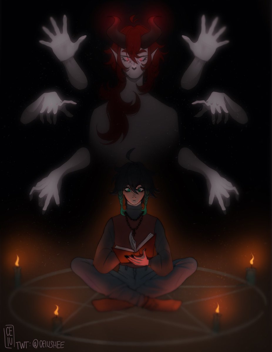 вэвэвжэав я опоздала но выкладываю свой артик на хэллоуинский коллаб #halloweenDiluVen #GenshinImapct #genshinimpactfanart #diluc #venti